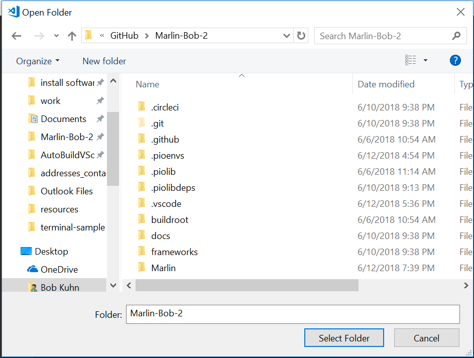 This brings up the Open Folder dialog. Select the folder that has the platformio.ini file in it.